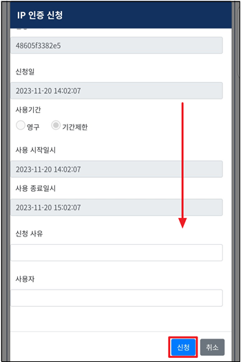 | IP 신청페이지 접속 및 신청 | |